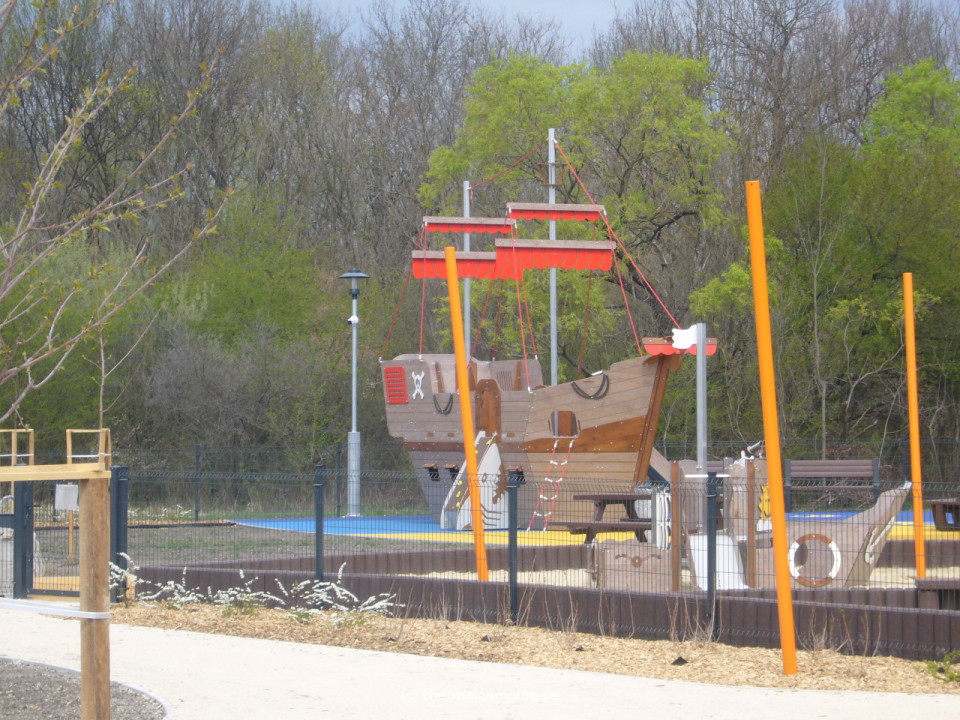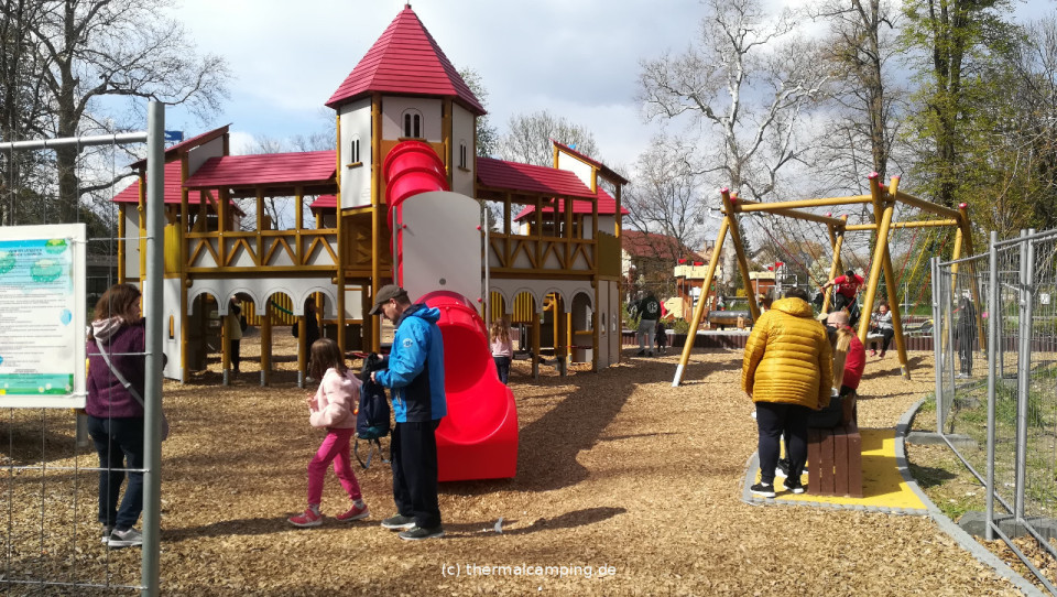 Im Schlosspark ca. 250 m (Luftlinie) vom Campingplatz: Café, Spielplätze, Fitnesspark mit entsprechenden Fitnessgeräten, Pavillon, Ruhebänke, Wanderwege, Radwege usw.