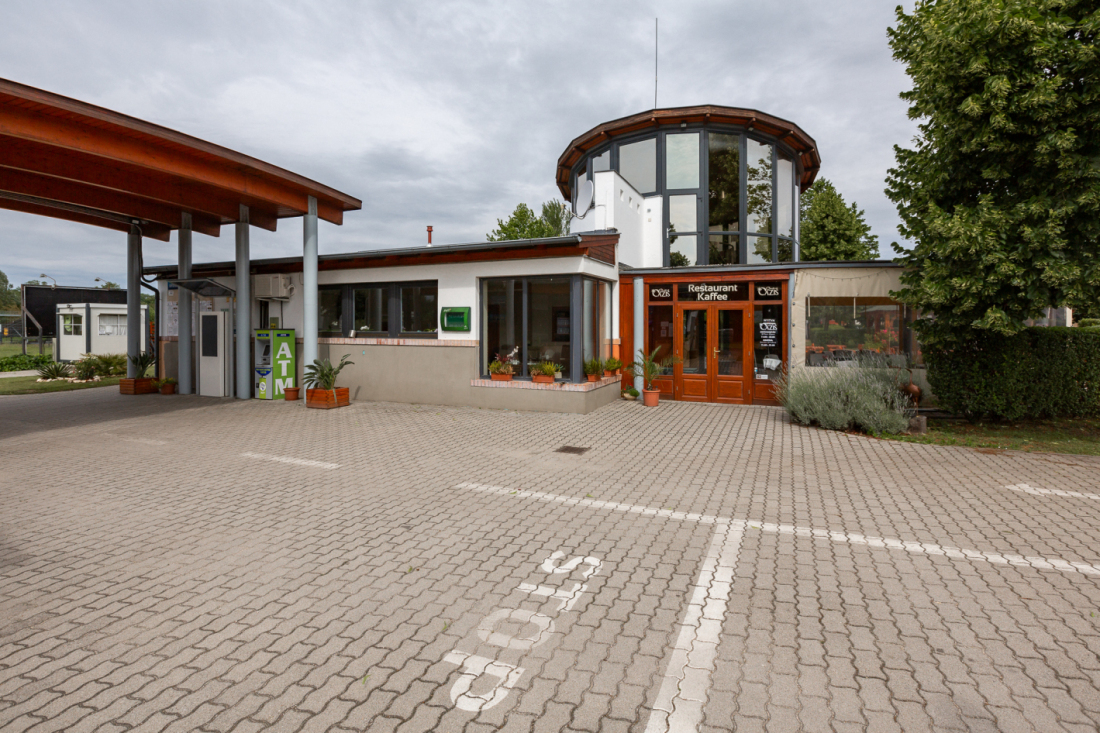 Das Campingrestaurant Oazis auf dem Thermalcamping Pápa, mit Wein- und Biergarten, Grill, ungarische und internationale Küche, Getränke aller Art, günstiges Tagesmenü.